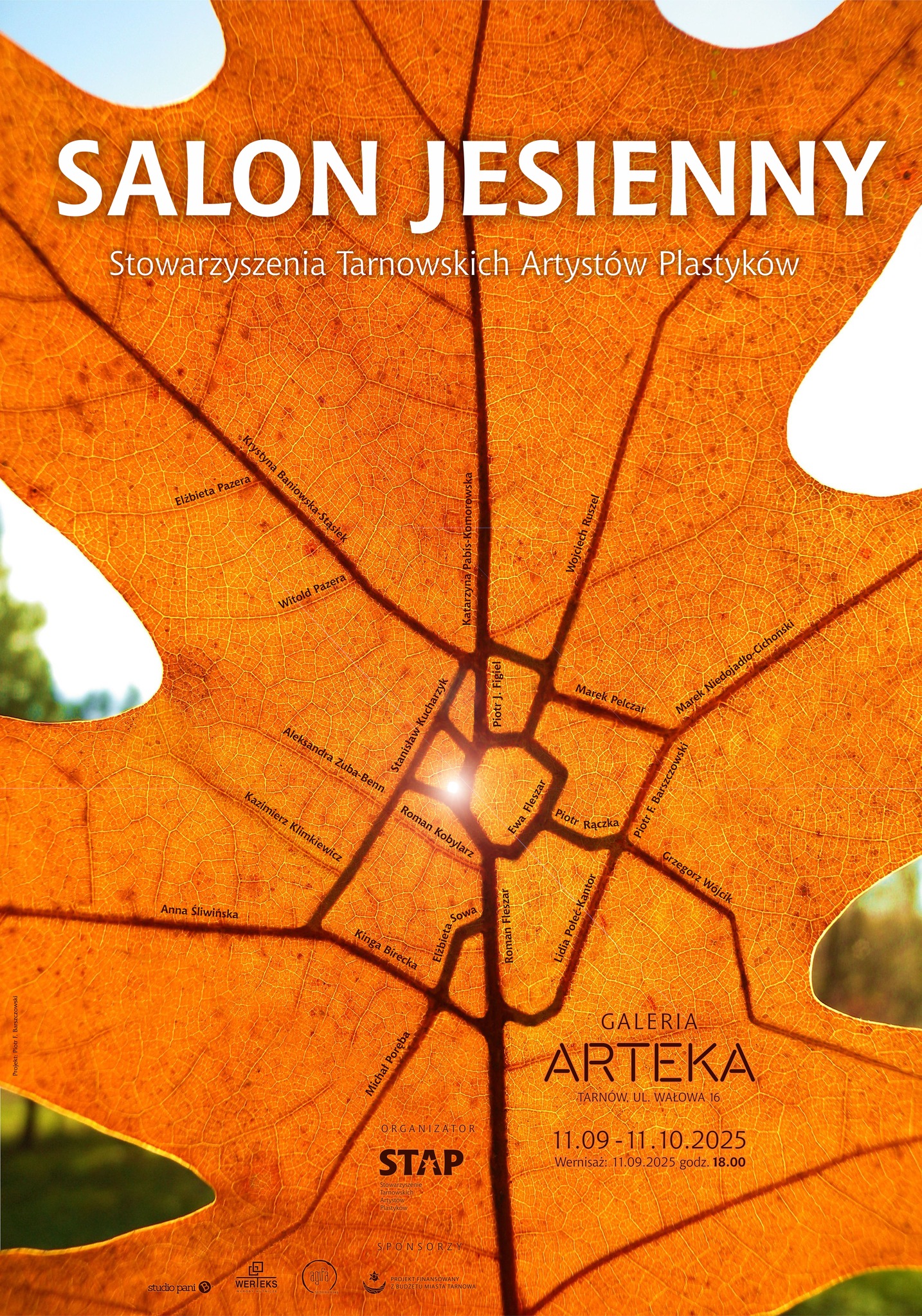 Galeria ARTEKA Wałowa 16, TarnówStowarzyszenie Tarnowskich Artystów Plastyków zaprasza na wystawę "Salon Jesienny 2025" do galerii ARTEKA funkcjonującej od lutego 2022 r. stowarzyszenia Tarnowskich Artystów Plastyków. Pierwszy Salon Jesienny STAP odbył się w październiku 2022.Tradycyjnie Salon Jesienny jest ekspozycją najnowszych dzieł zrzeszonych w STAP artystów związanych z Tarnowem.