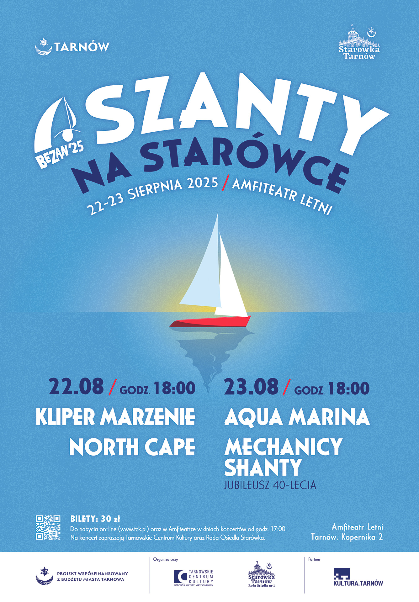 Amfiteatr Letni ul. Kopernika 4, Tarnów, małopolskie, PolskaJuż 23 sierpnia 2025 r. o godz. 18:00 zapraszamy Was do Amfiteatru Letniego w Tarnowie (ul. Kopernika 2) na wieczór pełen morskich opowieści i szantowych brzmień! Szanty na Starówce to coroczne spotkanie z muzyką, która pachnie solą, wiatrem i przygodą. Tego dnia na scenie pojawią się dwa zespoły: Aqua Marina - pięć żeńskich głosów tworzących […]