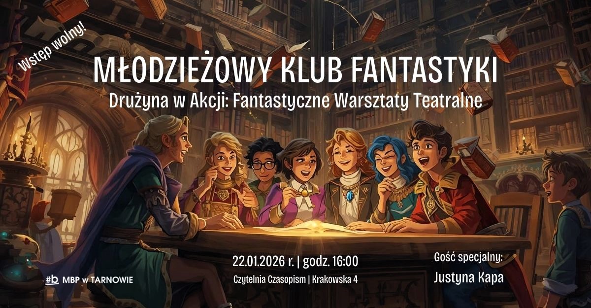 Czytelnia Czasopism Bieżących ul. Krakowska 4 (parter), Tarnów, PolskaMiejska Biblioteka Publiczna im. Juliusza Słowackiego w Tarnowie serdecznie zaprasza młodzież z Tarnowa i okolic do udziału w Młodzieżowym Klubie Fantastyki - przestrzeni adresowanej do młodych pasjonatów literatury, gier i […]