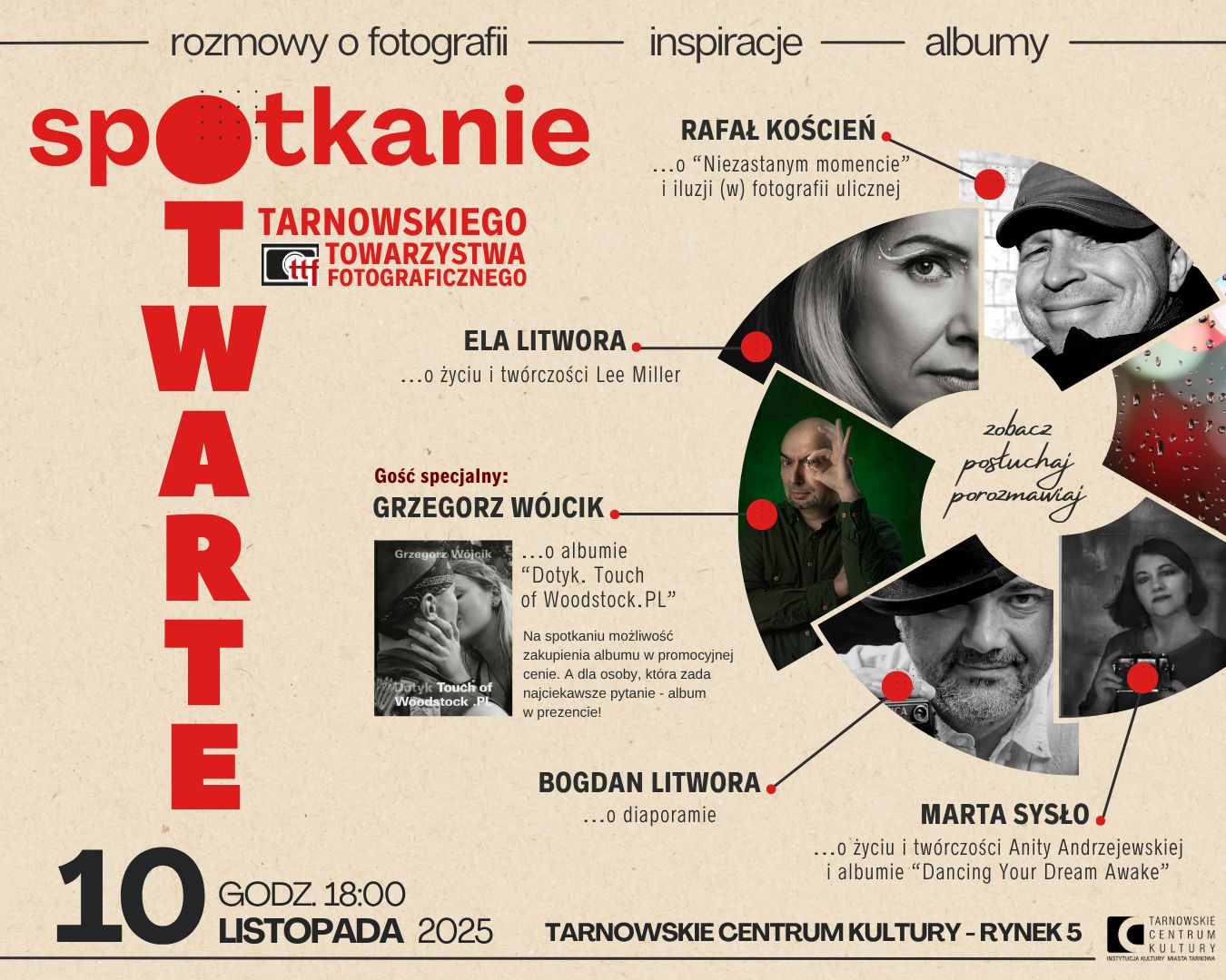 Spotkanie otwarte TTF - zapraszamy wszystkich miłośników fotografii! W poniedziałek 10 listopada 2025 r. o godz. 18:00 w Tarnowskim Centrum Kultury (Rynek 5) odbędzie się wyjątkowe spotkanie otwarte Tarnowskiego Towarzystwa Fotograficznego! To wieczór pełen inspiracji, pasji i rozmów o fotografii. Wspólnie zanurzymy się w świat obrazów, albumów i twórczych historii. Przyjdź, posłuchaj, zobacz i porozmawiaj […]