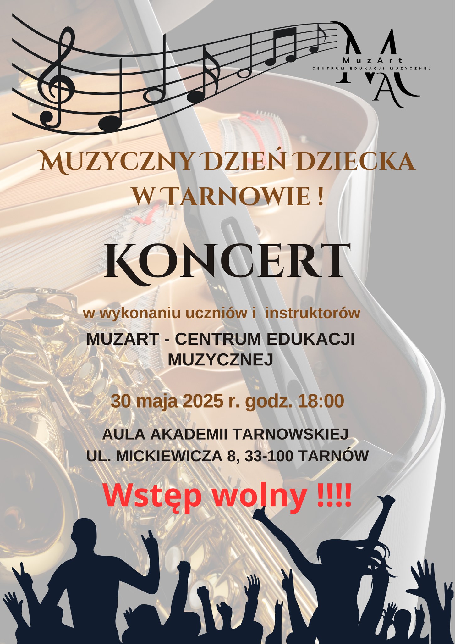 Już 30 maja o godz. 18.00 Tarnów zabrzmi przebojami artystów zapisanych na kartach historii muzyki rozrywkowej, w interpretacji uczniów oraz instruktorów MuzArt – Centrum Edukacji Muzycznej w Tarnowie! Usłyszymy utwory m .in. Hanny Banaszak, Kayah, Zbigniewa Wodeckiego, Ani Dąbrowskiej, Myslovitz, Urszuli i wielu innych!