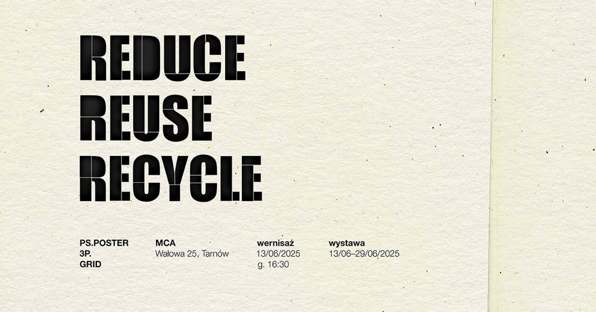 Wystawa Reduce, Reuse, Recycle to efekt współpracy trzech studenckich kół naukowych: PS_Poster z Akademii Tarnowskiej, Projekt Proces Plakat z krakowskiego Wydziału Form Przemysłowych oraz Koła Grid z Uniwersytetu Śląskiego w Cieszynie. Prezentowane plakaty powstały za pomocą technik manualnych, z wykorzystaniem materiałów pochodzących z odzysku.